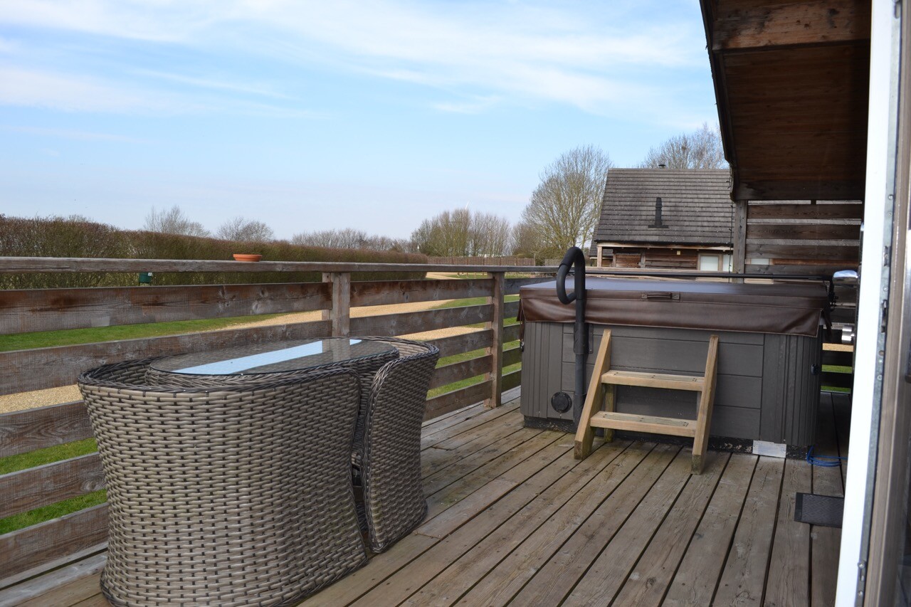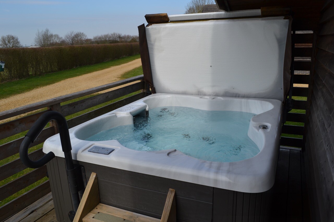The lodge sleeps two adults, has one bathroom with luxury wet room shower and an open plan oak floored kitchen, living area with its own warming log burner and large 4 person hot tub.